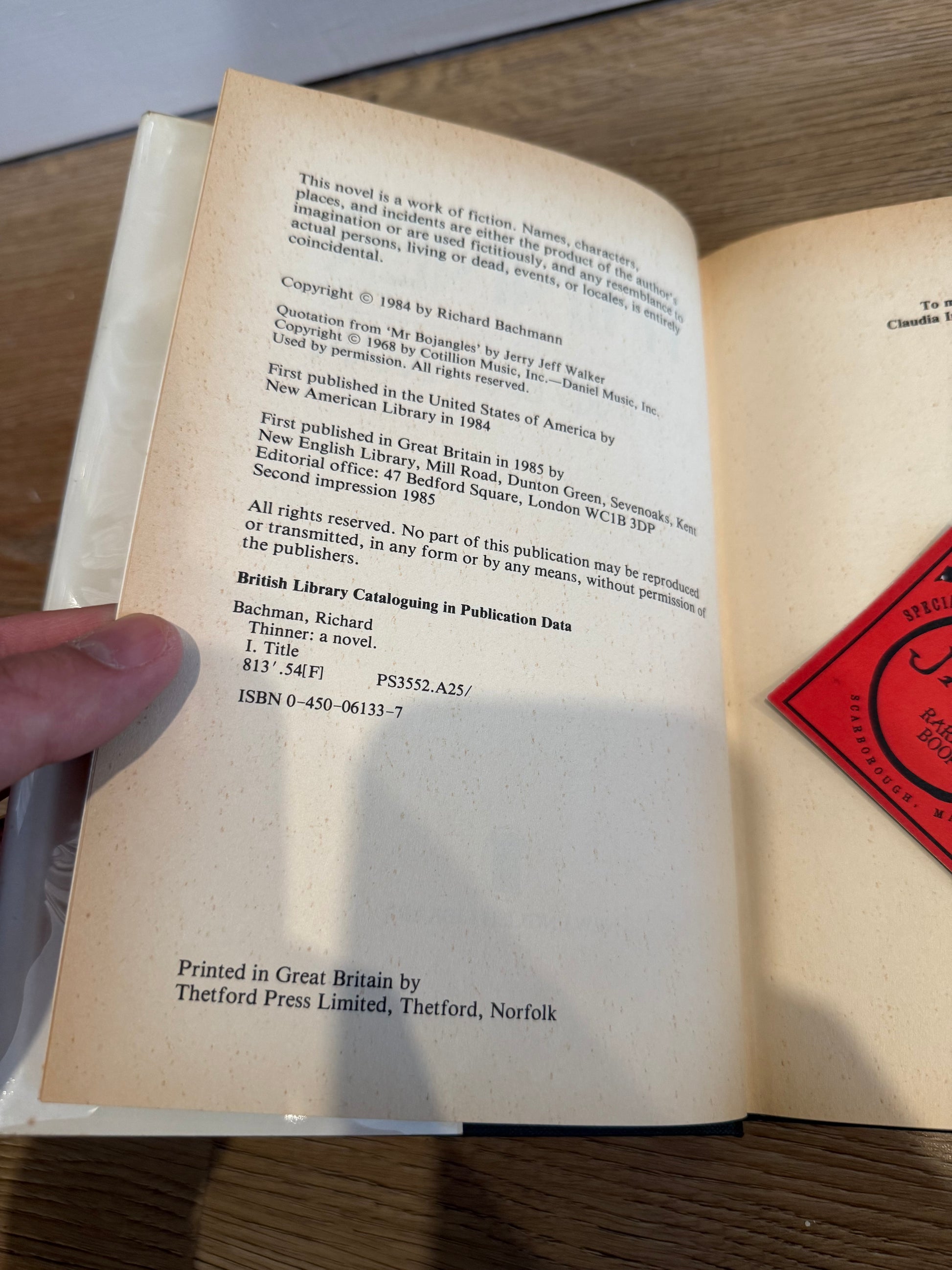Stephen King, Thinner, UK First Edition, NEL Publishing
